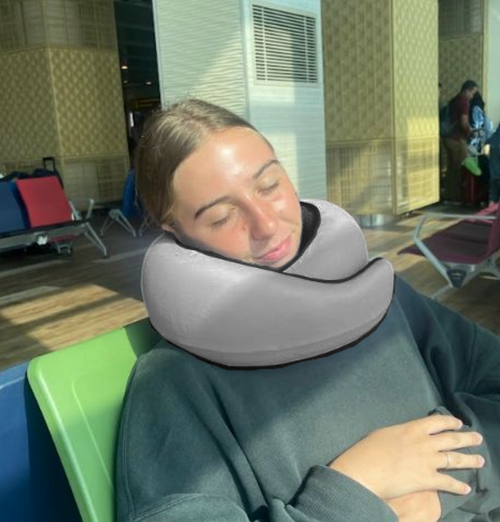Des voyageurs ressentent un meilleur confort pendant leurs vols grâce à l’oreiller Saudae™.